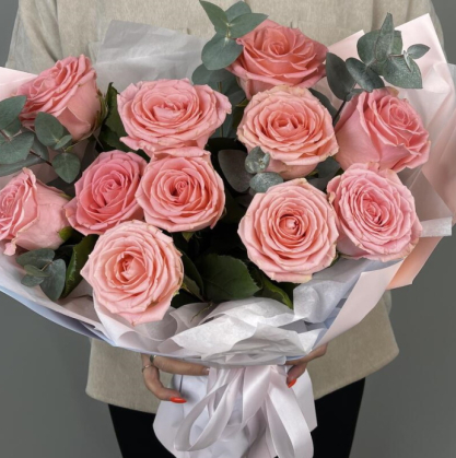 Буукет 11 розовых роз с эвкалиптом | Купить с доставкой в Реутове