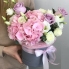 Шляпная коробка с гортензией, розами и лизуантусами | Купить в Реутове