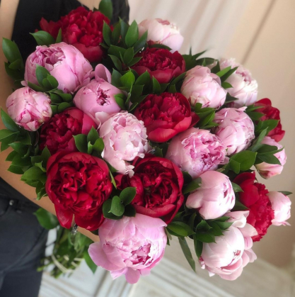 Букет из 21 розовых и красных пионов | Купить в Реутове
