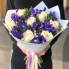 Свежайшие белые розы идеально сочетающиеся с распущенными ирисами.