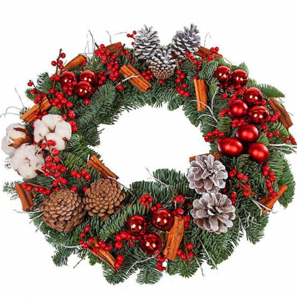 Венок является символом вечной жизни, появлением новых светлых моментов, дружбы, взаимопонимания, любви. Традиция вешать на дверь композицию из ароматных еловых веток пришла к нам из Европы. Именно там люди украшали свои дома, помогая городу преобразиться в преддверии рождества.